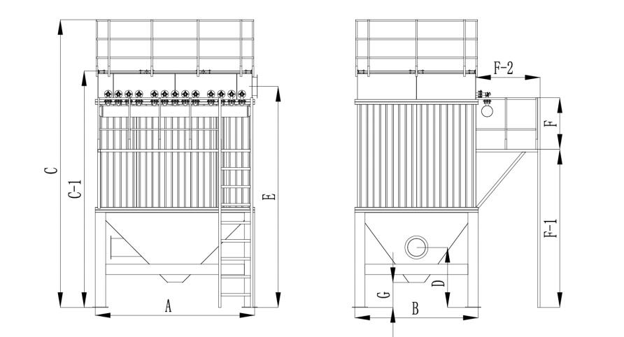 Nota: a causa dei vincoli del sito o delle limitazioni del trasporto, il numero di tramogge per le ceneri nei depolveratori a maniche a getto a impulsi può variare, da una a più unità.